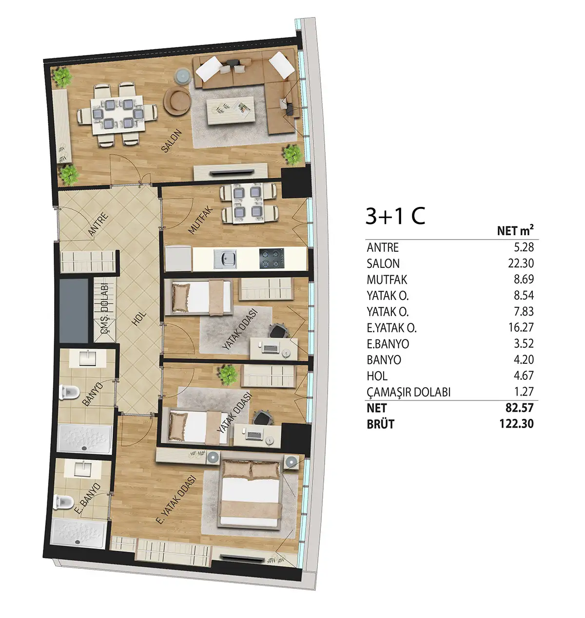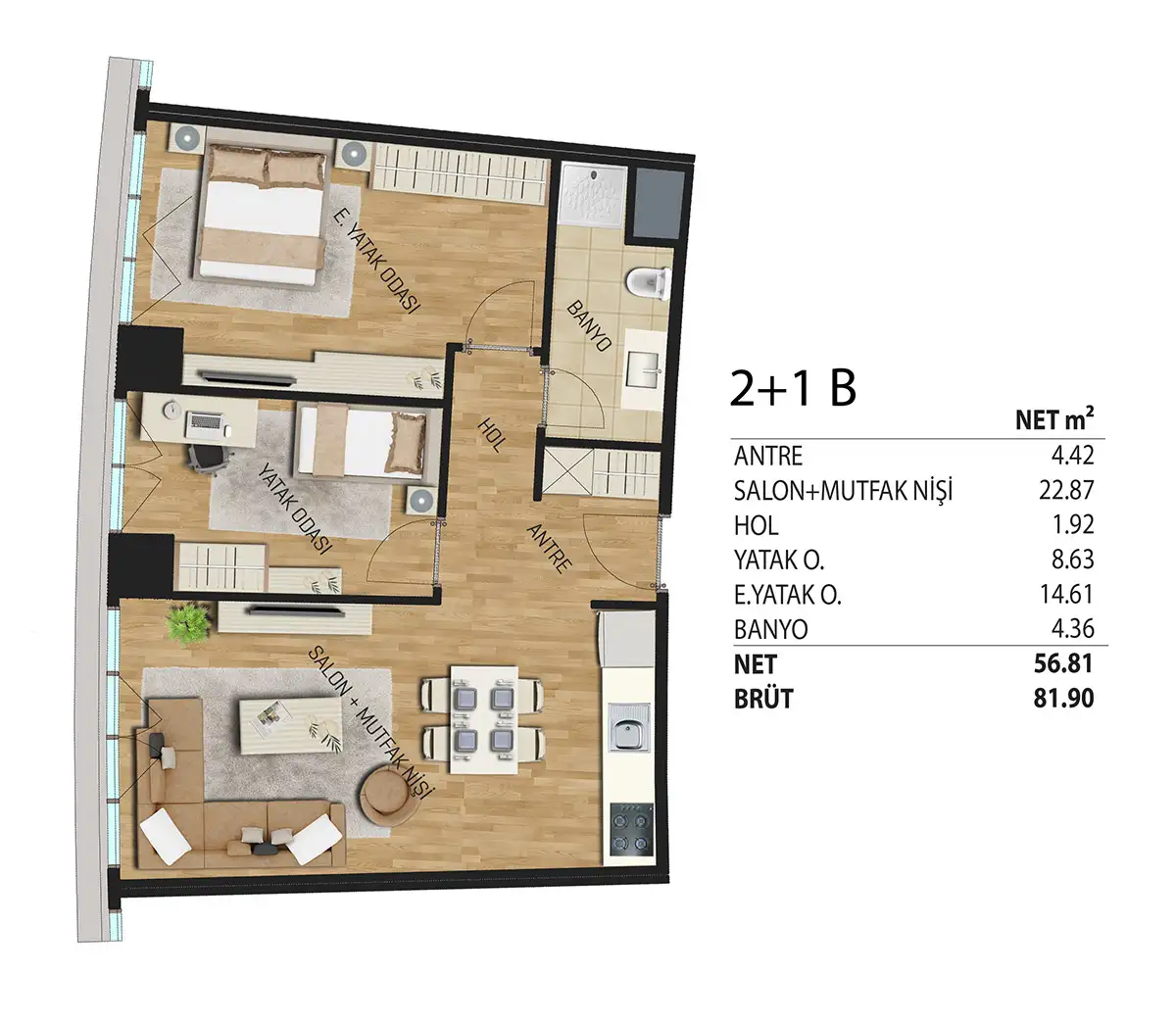 The project in Maltepe rises on an area of 7 thousand 157 square meters. There are 1+1, 2+1, and 3+1 flats in the project, which consists of a total of 3 blocks, including 1 residence with 35 floors and 2 offices with 6 floors each. There are a total of 364 luxury residential apartments with home office features in the 35-floor residence tower. In the project, 1+1's have sizes ranging from 51 to 64 square meters, 2+1's 82 to 119 square meters, and 3+1's ranging from 122 to 157 square meters.