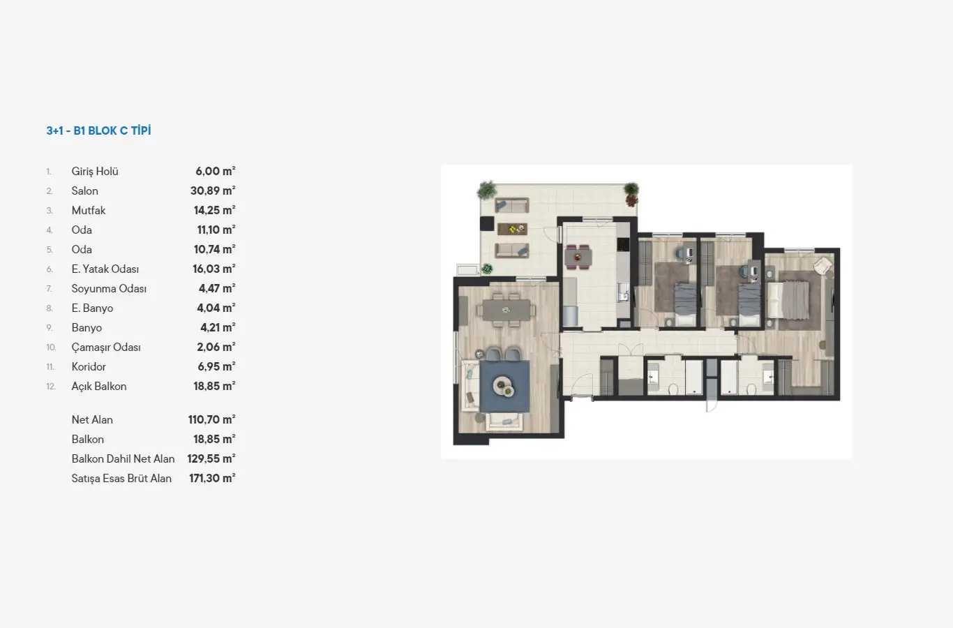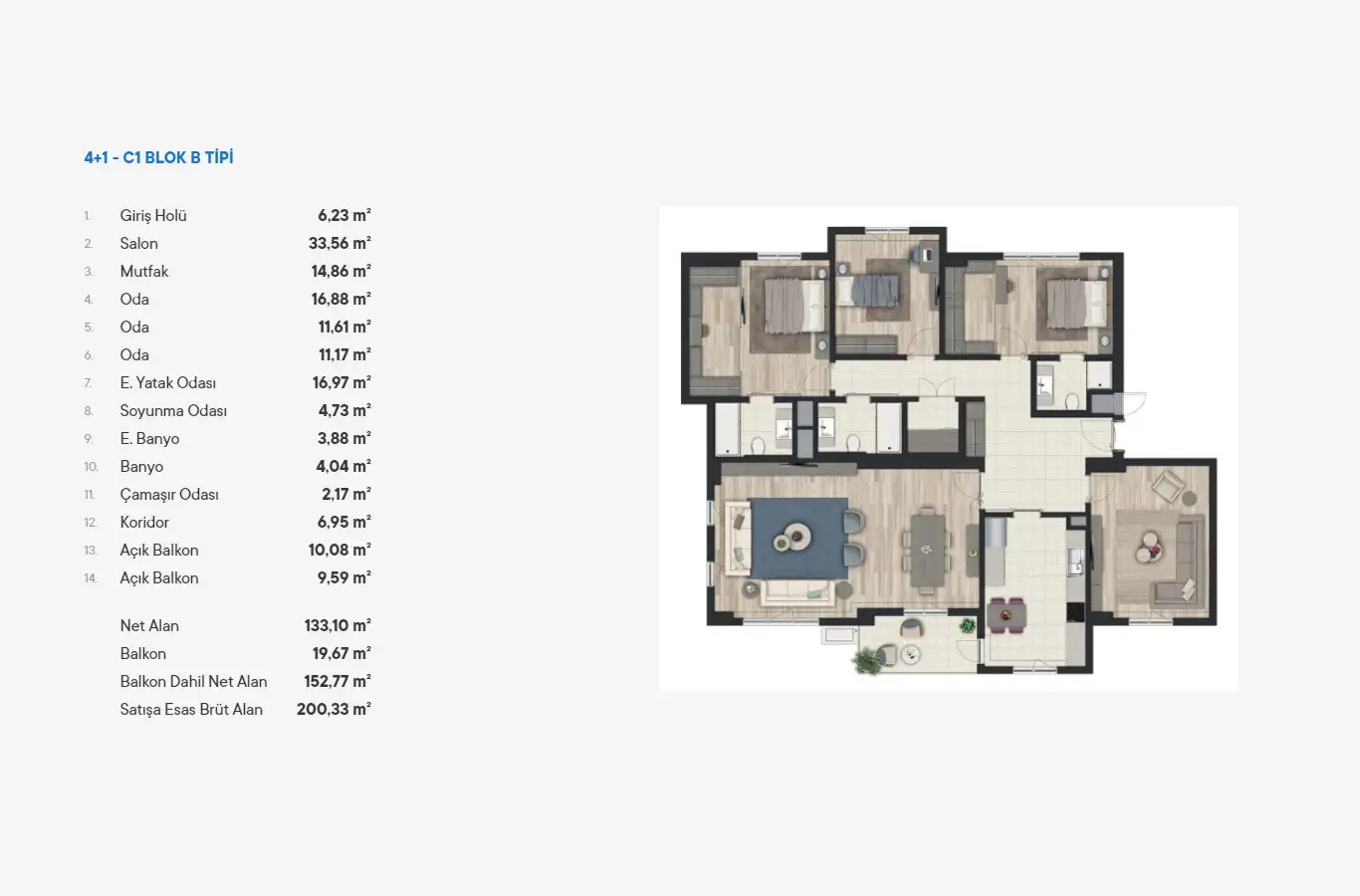 A life full of privileges that blends natural and modern life awaits you in Başakşehir. You will find the calmness of the Anatolian side and the unending energy of the European side in this project. Rising in Başakşehir, one of the new favourite districts of Istanbul, the project has 453 apartments with different widths from 1+1 to 4+1. The project, which was admired for its horizontal architecture, was designed very suitable for family life. In the project, 1+1 apartments are 58 to 68 square meters, 2+1 apartments are 102 to 127 square meters, 3+1 apartments are 159 to 171 square meters, and 4+1 apartments are 188 to 208 square meters.