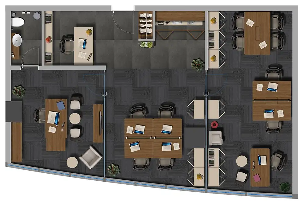 The project offers you comfortable working environments in A+ offices designed with a modern style against the view of the islands.