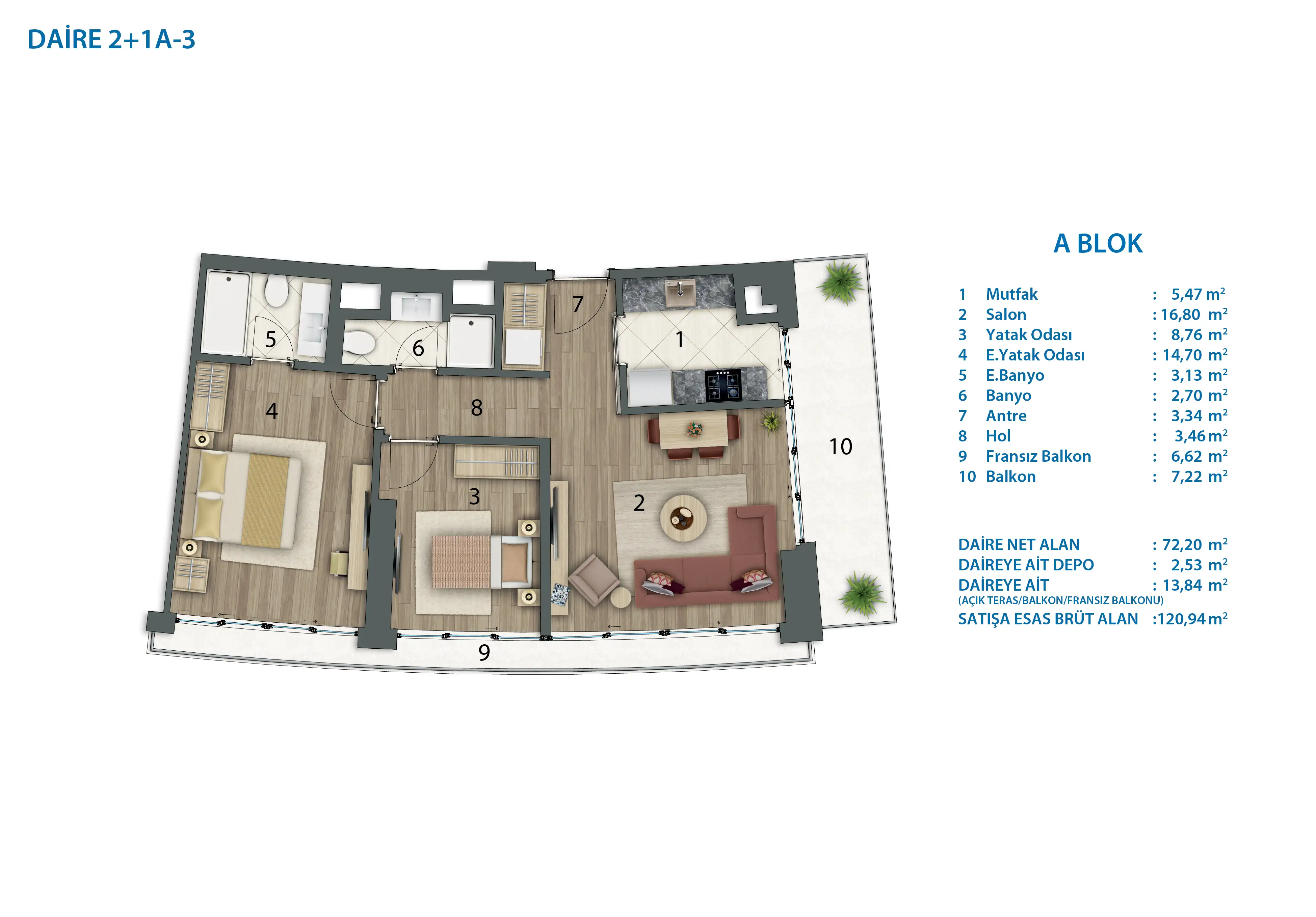 The Başakşehir housing project brings all the details you would expect from a five-star hotel, such as a gym, steam room, Turkish bath and sauna, to your living space.